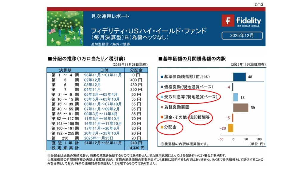 ここで債券型投資信託である、フィデリティ・USハイ・イールド・ファンド