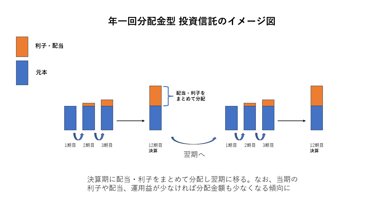 年一回分配金型は、1年分の運用成果をまとめて分配します。