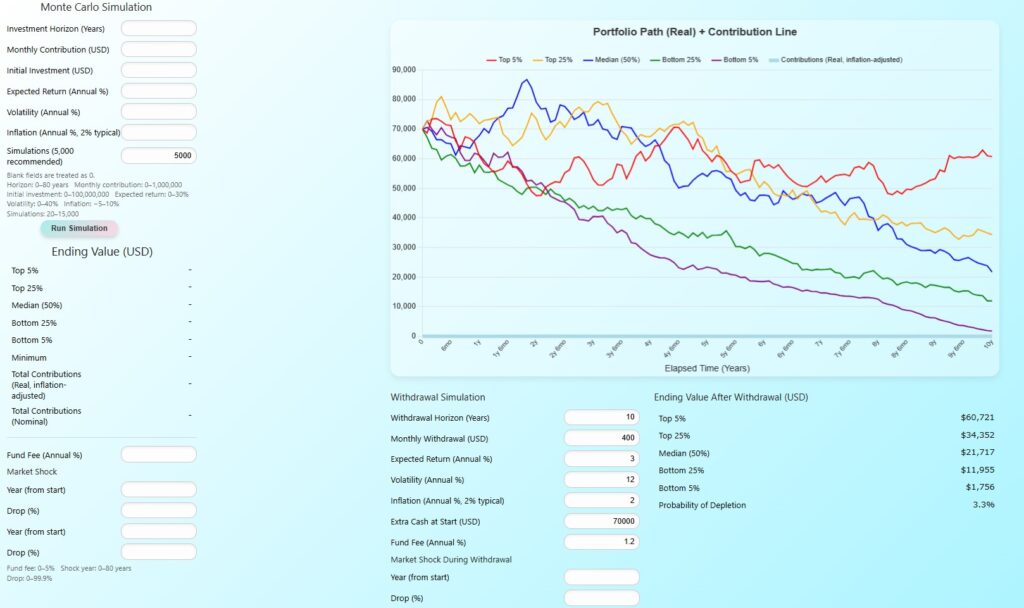 - You can test outcomes for retirement funds, education funds, housing preparation funds, etc.