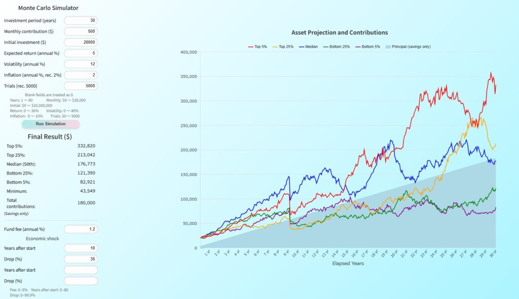 This simulation tool lets you grasp in advance the risk when investment succeeds or falls below expectations.