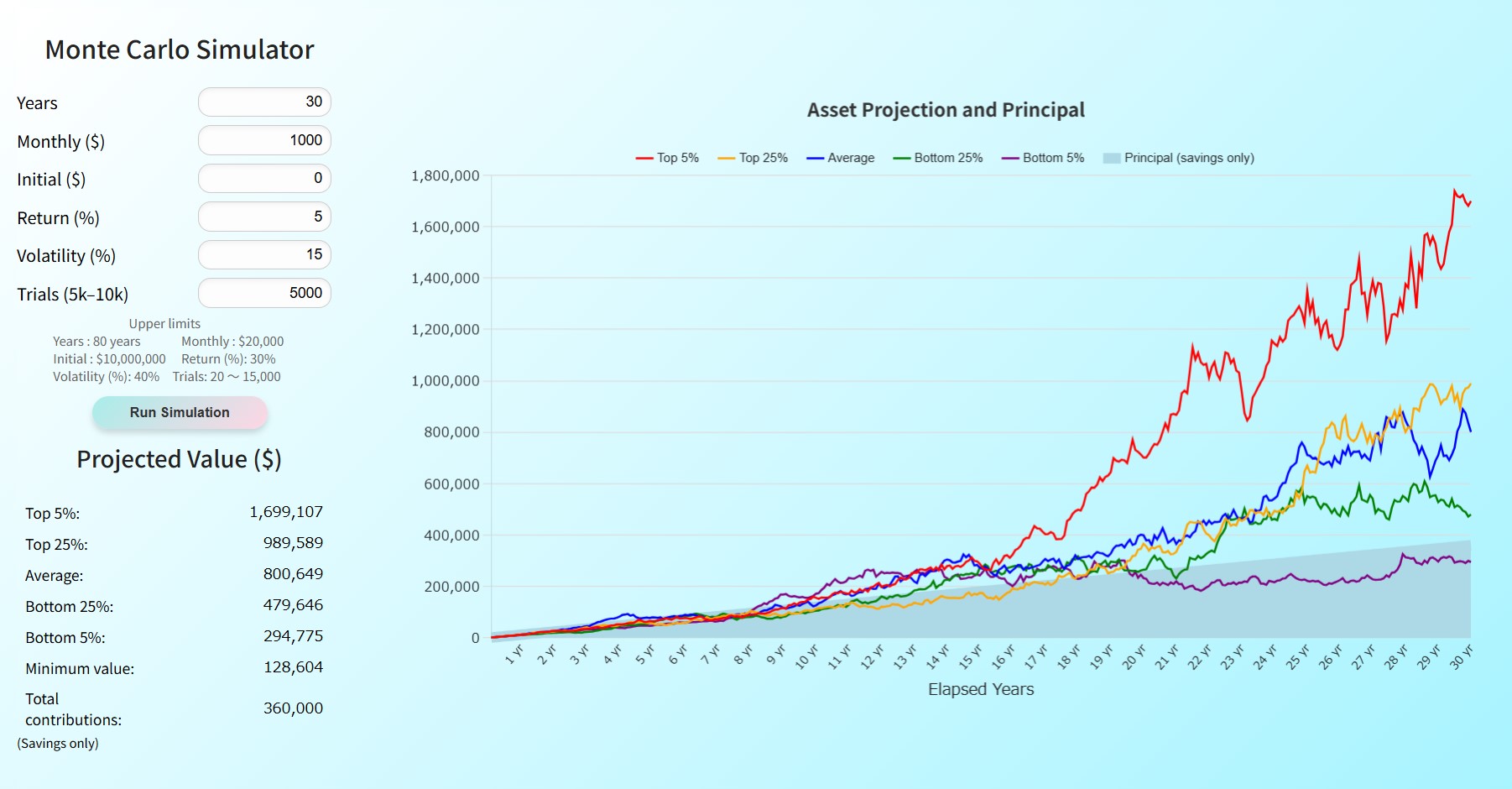 - Use Monte Carlo simulation to visualize the risks of long-term, tax-advantaged investing strategies.