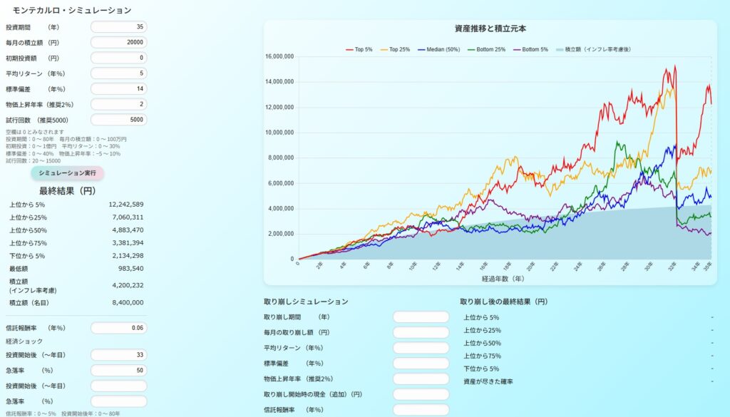 50%の暴落を受けてしまった場合のシミュレーション結果