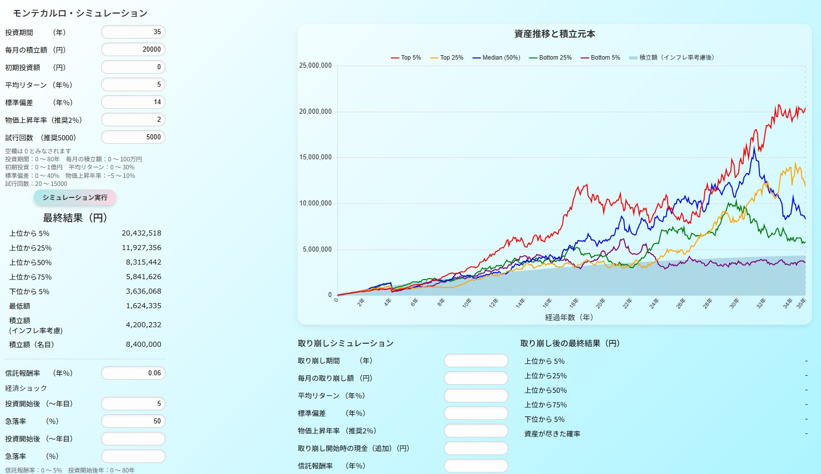 50%の暴落を受けてしまった場合のシミュレーション結果